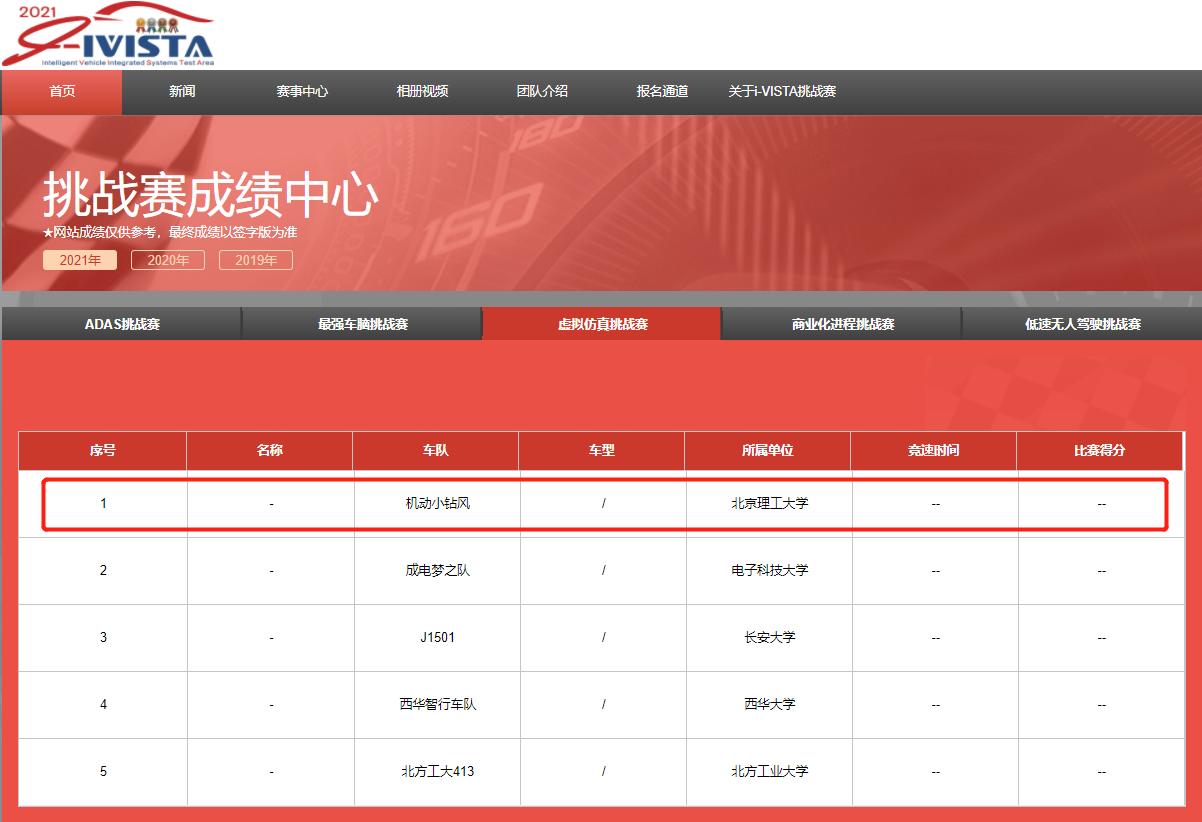 中国国际智能产业博览会(简称智博会)是经国家批准,由重庆市人民政府、科学技术部、工业和信息化部、中国科学院、中国工程院和中国科学技术协会共同主办的国际顶级盛会。2021 i-VISTA自动驾驶汽车挑战赛(i-VISTA Grand Challenge)作为智博会的品牌赛事之一,由ADAS辅助驾驶系统挑战赛(AEB/APS)、最强车脑挑战赛、商业化进程挑战赛、虚拟仿真挑战赛和低速无人驾驶挑战赛五场赛事组成,共吸引了包括清华大学、北京理工大学和电子科技大学在内的全国100多支队伍参加比赛,央视新闻频道对赛事进行了报道。